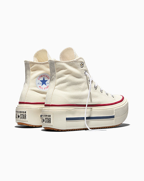 スタイルの限界を超えたチャックテイラー オールスター ダブルスタックをお試しください。すべての視線を引きつける大胆なプラットフォームシルエットと、軽量で快適な履き心地が、他にはない自分だけのスタイルを作り上げます。